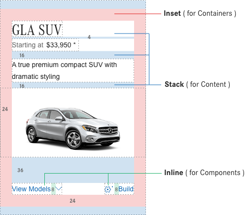 Combining the 8-pixel mini unit and 2x idea together we have a robust system allowing ultimate spacial flexibility. This approach can be applied to fluid, fixed or hybrid grid layouts. All spacing between elements can be defined by the base unit. Consistent and replicated use of spacing ensures spatial rhythm between all content.